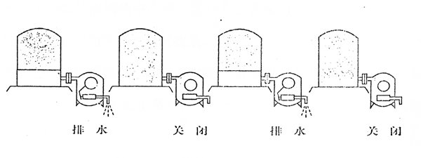 ④由于本设备是靠浮体的上下运动动力源的,只有切水器中水位到一定位置时,才能打开特制阀排水,所以刚刚打开切水器入口阀时不见有水排出为正常。待切水器中的水油器置换,油回到储油罐后,切水器进入正常工作状态。