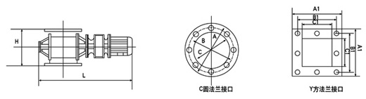 叶轮给料机的上、下法兰口基本是方形或圆形,也可以由用户选定,普通型一般适用于无风力压力。